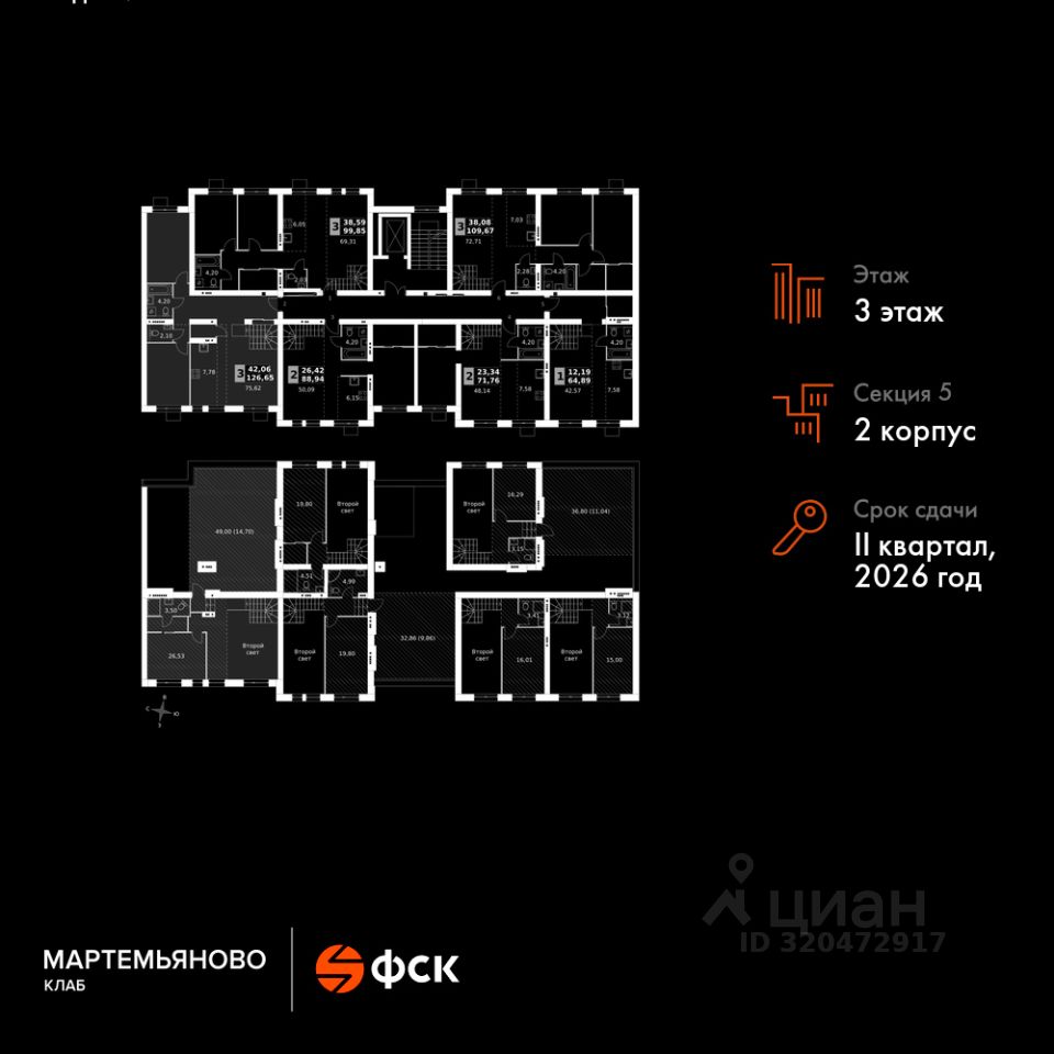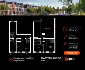 Продаётся 3-к квартира номер 107 общей площадью 126.65 кв.м на 3-м этаже 3 этажного дома. Без отделки.