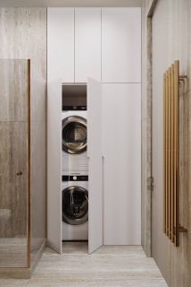 Эргономичная планировка: просторная кухня - гостиная, мастер - спальня с просторным санузлом и гардеробной, второй санузел с постирочной, много мест для хранения. Потолки - 3,1 м.