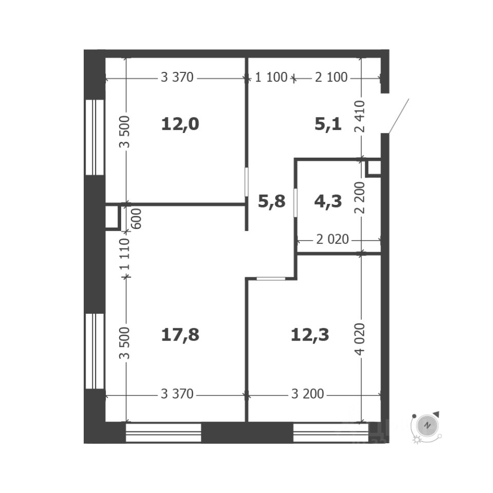 Общая площадь квартиры — 57.3 кв. м, этаж 3 из 18.