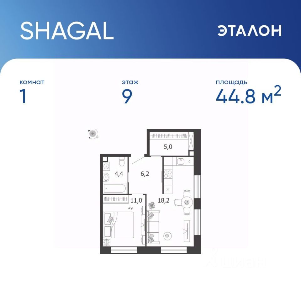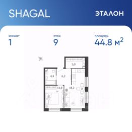 Продается квартира 640, по адресу г. Москва, ЮАО, Даниловский, ул. Автозаводская, вл. 23/75, корпус Жилой квартал Shagal, 3 очередь, 5 этап, корпус 8 в Shagal на 9 этаже, с площадью 44.8 м2.