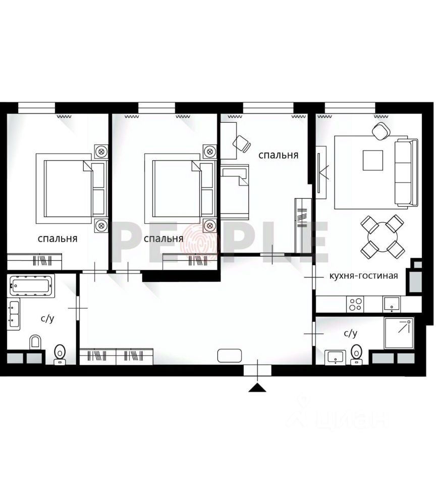 — 3 комнаты свободного назначения (спальня/детская/кабинет/гостиная)