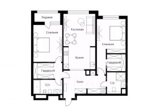 В квартире две изолированные спальни, светлая и уютная кухня-гостиная, два санузла, две гардеробные, у входа есть пространство для шкафов и постирочной. Стены ровные, оштукатурены, есть стяжка, установлена система кондиционирования, короба в санузлах, водоотведение, разводка по электрике. Потолки 3 метра.