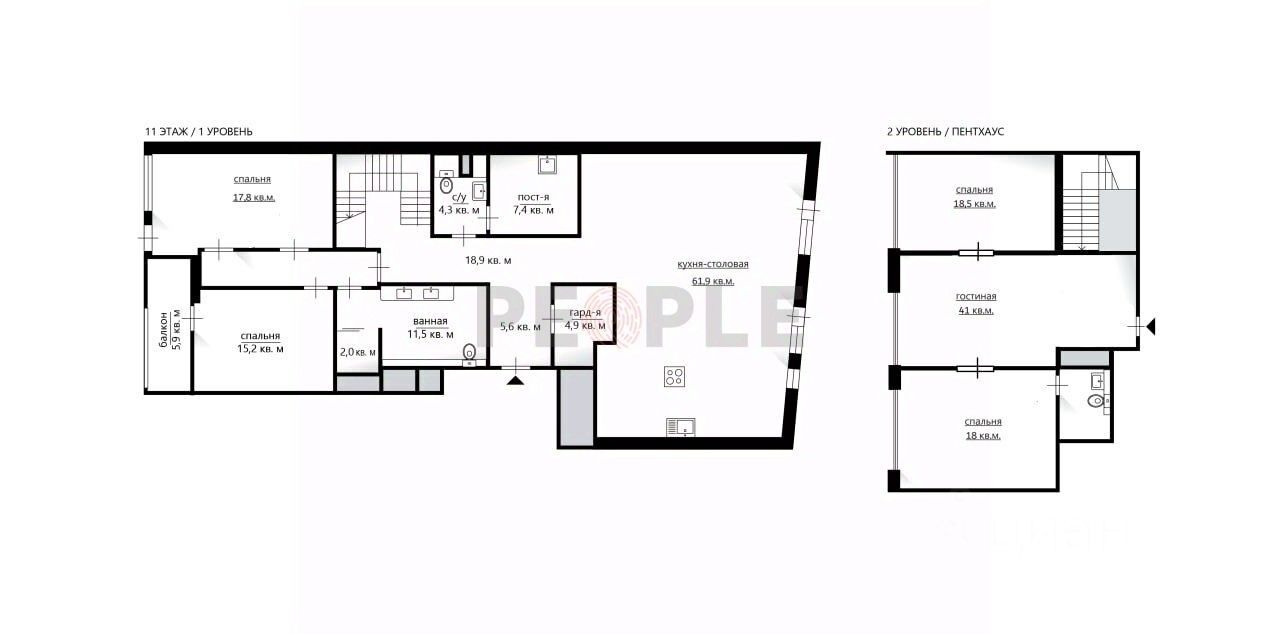 Из пентхауса возможен выход на эксплуатируемую кровлю.