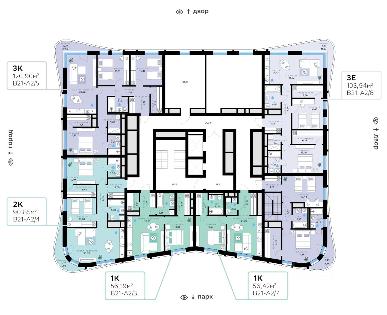 В продаже 1к квартира общей площадью 56,42кв. м. Квартира расположена на 2 этаже 13-этажной секции корпуса Advanced в новом Рублёво-Архангельском районе Москвы, который строит Сбер. Дом находится на второй береговой линии Москвы-реки.