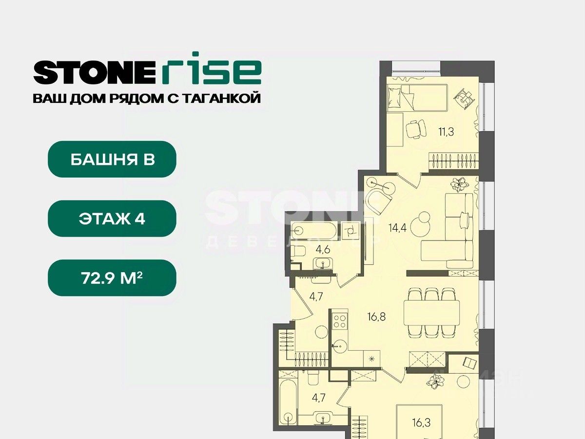 Девелопер STONE - девелопер коммерческой и жилой недвижимости классов бизнес и премиум в Москве с 18-летним опытом. С 2022 года занимает лидирующую позицию на офисном рынке (рейтинг РБК). Сегодня в портфеле девелопера представлено 2,5 млн кв. м построенных, строящихся и проектируемых объектов, из которых более 850 тыс. кв. м находятся в стадии строительства.