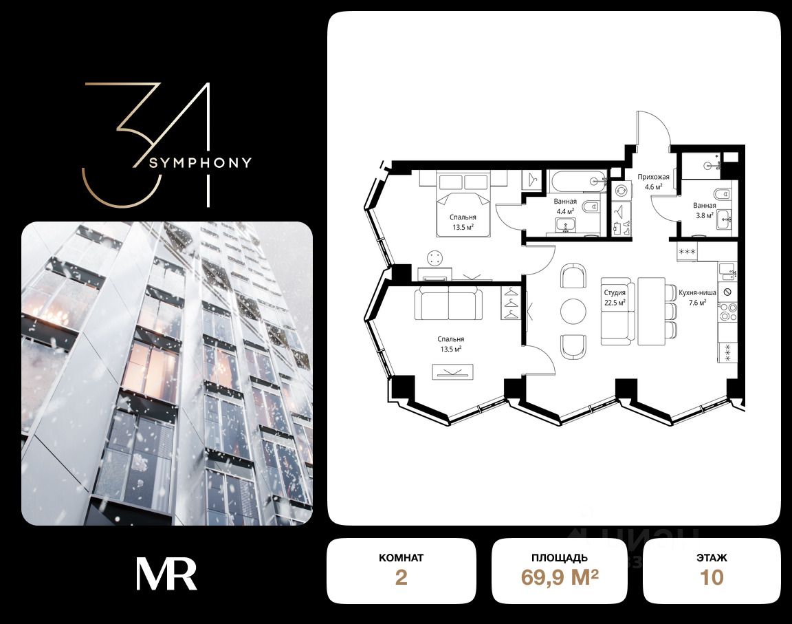 ЖК Симфония 34 - концептуально новый жилой комплекс премиум-класса с подземной парковкой, состоит из четырех башен высотой 36 - 54 этажа.
