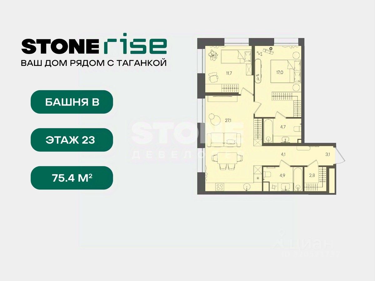 Девелопер STONE - девелопер коммерческой и жилой недвижимости классов бизнес и премиум в Москве с 18-летним опытом. С 2022 года занимает лидирующую позицию на офисном рынке (рейтинг РБК). Сегодня в портфеле девелопера представлено 2,5 млн кв. м построенных, строящихся и проектируемых объектов, из которых более 850 тыс. кв. м находятся в стадии строительства.
