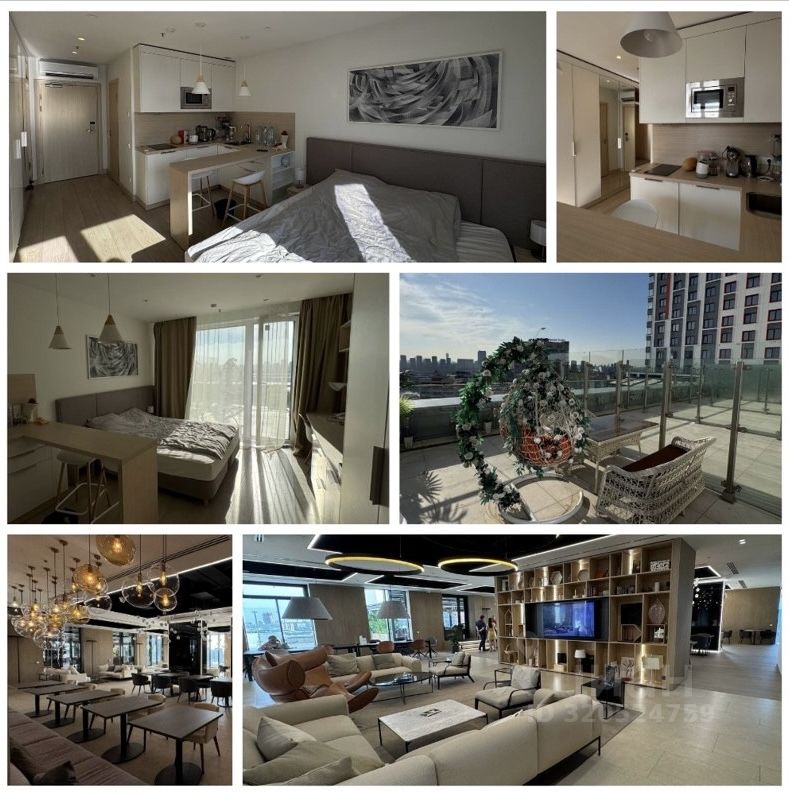 В лобби нового апарт-отеля на 13 этаже оборудован коворкинг и фитнес зал.