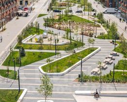 У проектов будет общая инфраструктура и благоустроенная территория. Уже открыта часть пешеходного бульвара, который строится по проекту британского бюро Gillespies. Здесь можно гулять после работы, играть с детьми, заниматься спортом и отдыхать у сухого фонтана с ночной подсветкой. В будущем в кластере появится пешеходный мост, который соединит жилые кварталы, и комьюнити-центр "ОМА" с магазинами, кафе, местами для спорта, встреч и общения.