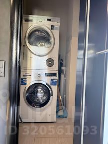 Постирочная со стиральной, сушильной машинами и встроенным шкафом.