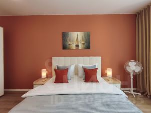 * Просторная СПАЛЬНЯ с широкой кроватью King-Size со стильным мягким изголовьем, комфортным матрасом и подъемным механизмом, два универсальных шкафа и столик для работы или макияжа;