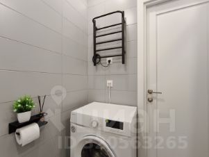* Современный санузел с ванной, стиральной машиной и электрической сушкой для белья.