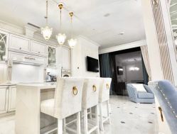 Дизайнерский ремонт выполнен с использованием премиальных материалов и передовых технологий, качественная дорогая мебель из массивов лучших пород дерева. Есть вся необходимая бытовая техника от лучших производителей. Современная ванная комната оборудована сантехникой от мировых брендов.