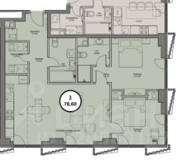 Функциональная планировка: мастер-спальня со своим санузлом, вторая спальня (кабинет), просторная гостиная с кухней, гардеробная и гостевой санузел.