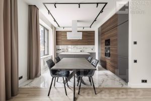 - кухня-гостиная 53 м² (с зоной столовой); - мастер-спальня 24 м²; - вторая спальня 14 м²(может быть кабинетом либо детской); - 2 санузла. Дизайнерский ремонт, выполненный по индивидуальному проекту с использованием высококачественных материалов. Квартира полностью укомплектована мебелью и бытовой техникой от ведущих мировых производителей.