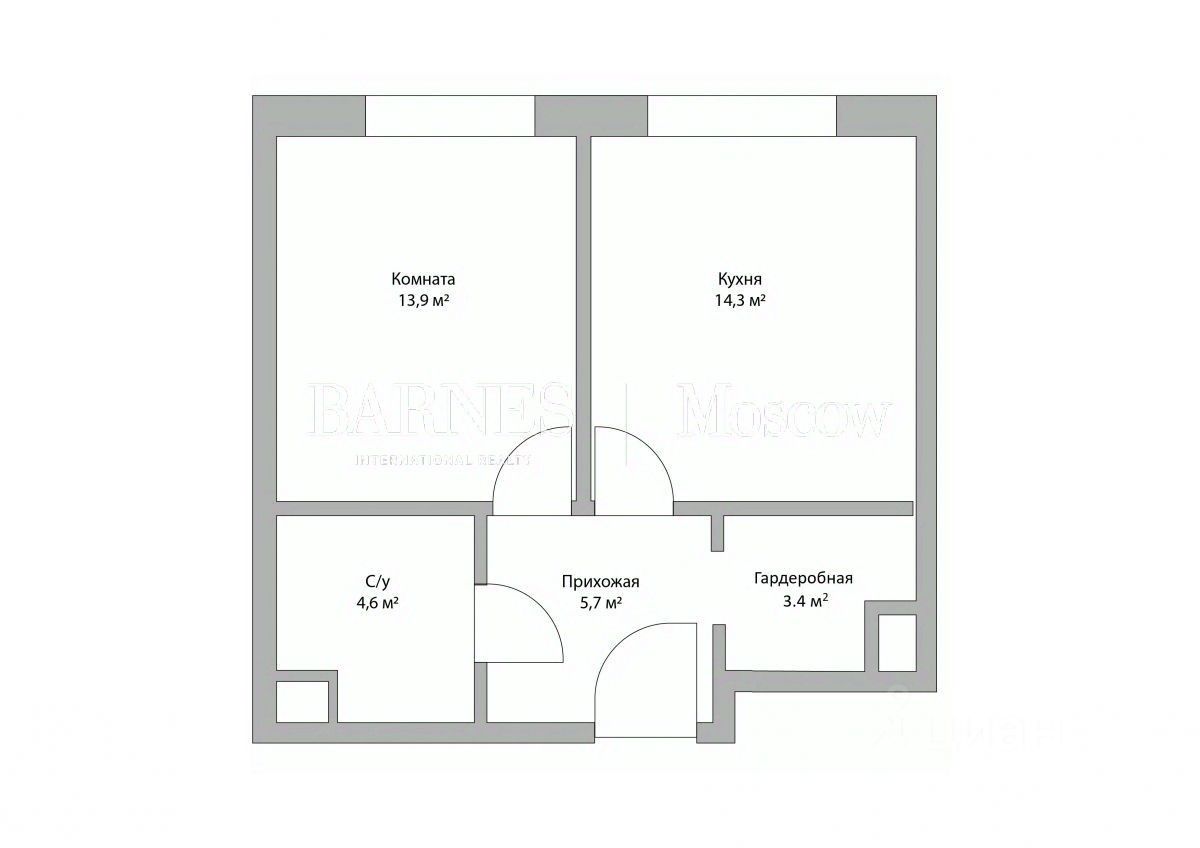 Квартира без отделки. Функциональное планировочное решение: комната, кухня, санузел, гардеробная.