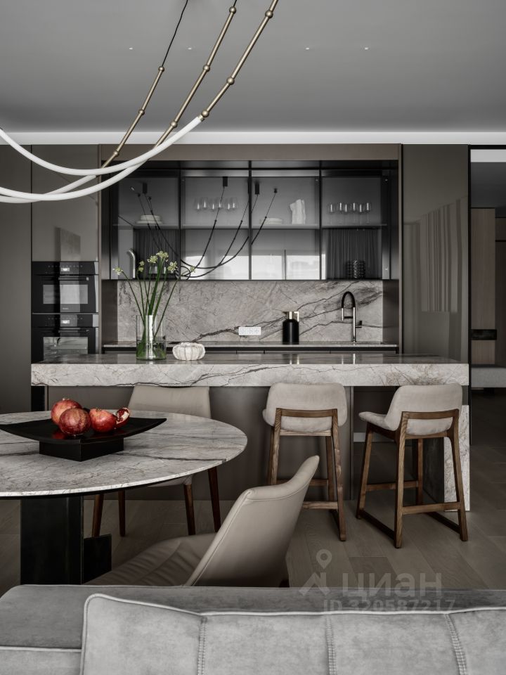 Планировочное решение: просторная кухня-столовая-гостиная, мастер-спальня с собственной ванной и гардеробной комнатами, спальня с собственной ванной комнатой, спальня/кабинет с собственной ванной комнатой, гардеробная.