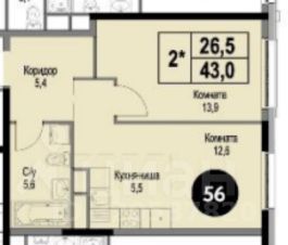 Евро-двушка (1-комнатная квартира современной планировки) в новом доме, без отделки. Переуступка прав — все документы готовы, сделка быстрая.