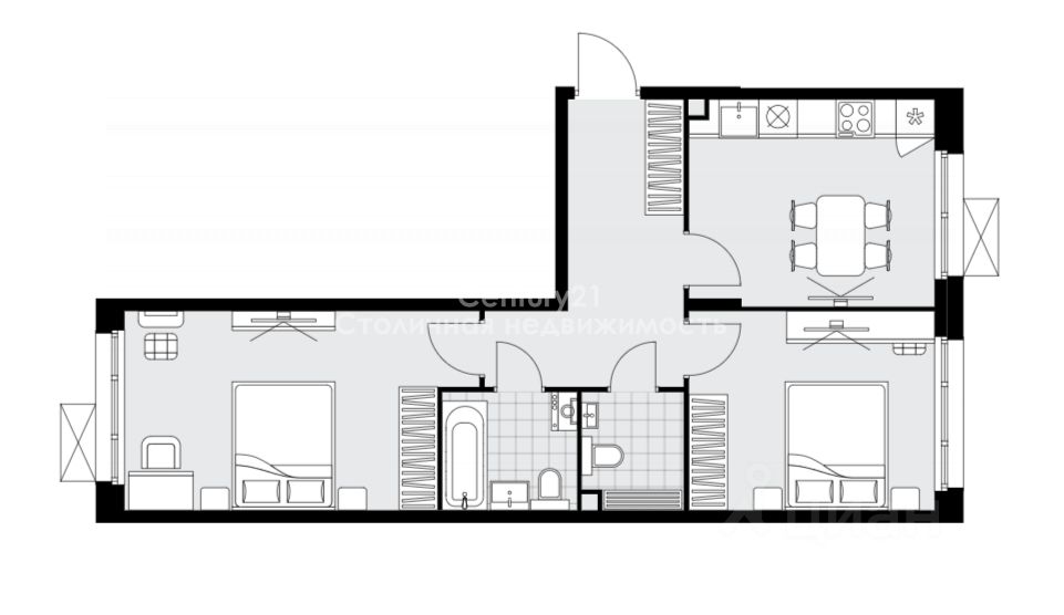 - 2-х комнатная квартира, распашонка: 2 изолированные спальни (15,9 кв.м.+11,9 кв.м.) , большая кухня (12,2 кв.м.), 2 изолированных сан.узла