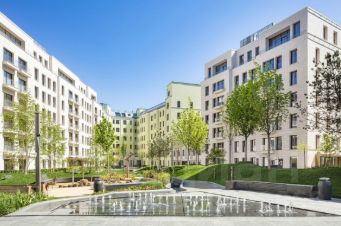 Инфраструктура: на территории комплекса есть внутренний сад с ручьём, детскими площадками, лаунж-зонами и зелёными аллеями.