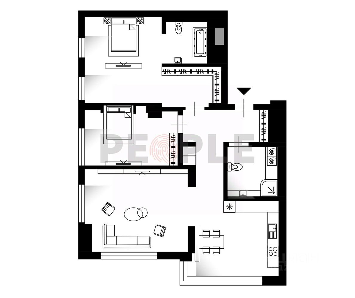 Апартаменты 87 м² с панорамными видами в ЖК "Поклонная 9" | 2 спальни