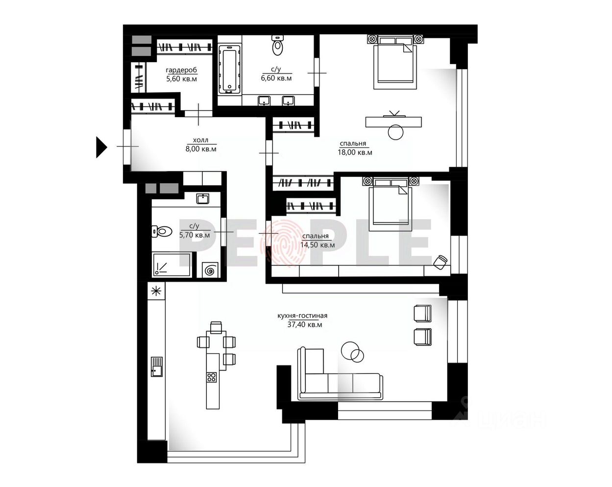Стильные апартаменты с отделкой в премиальном жилом комплексе "Поклонная 9". Пространство оформлено в концепции "Модерн", подчеркивая элегантность и комфорт.