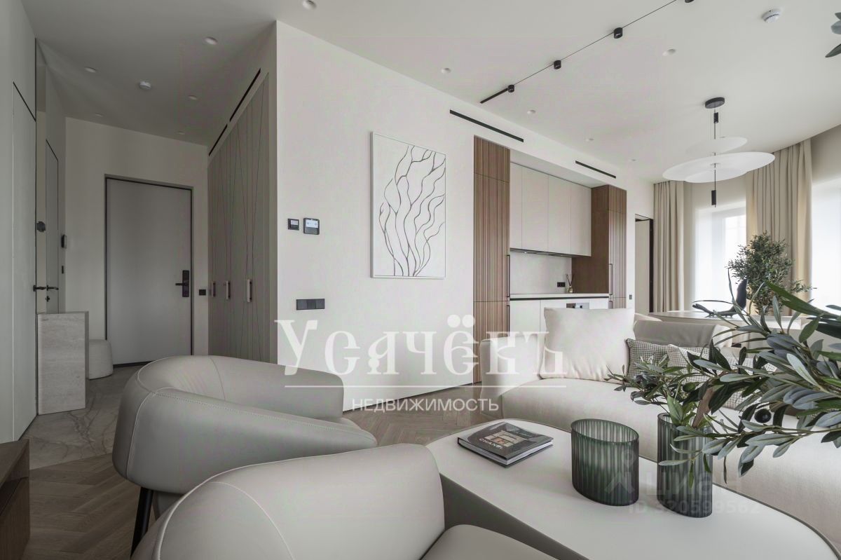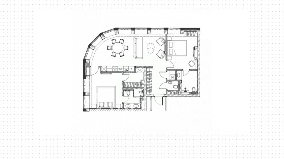 Планировка: кухня, гостиная, мастер-спальня с ванной и гардеробной комнатами, вторая спальня, гостевой санузел.
