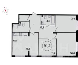 Уважаемые господа и коллеги, Вашему вниманию предлагается очень интересное и выгодное предложение! В продаже отличный вариант евро четырехкомнатной квартиры, расположенной по адресу: г. Москва, проспект Магеллана, д. 2. Квартира расположена на 2-м этаже 9-ти этажной секции дома. Два лифта: пассажирский и грузовой. На площадке 4-е квартиры, за общей тамбурной дверью. Общая площадь квартиры 91,2 м2. Удобная, большая прихожая. Коридор зонирован, где обустроен накопительный шкаф. Три изолированные комнаты, площадью 13,4/11,2/16,6 м2, и большая кухня-гостиная, площадью 15,3 м2. Имеется два совмещенных санузла и кладовка при входе. Высота потолков 2,7 м. Окна выходят на две стороны. Рядом парк для прогулок и занятия спортом. Развитая инфраструктура. До ближайшей станции м. Прокшино 15-ть минут пешком. В квартире сделан качественный ремонт.