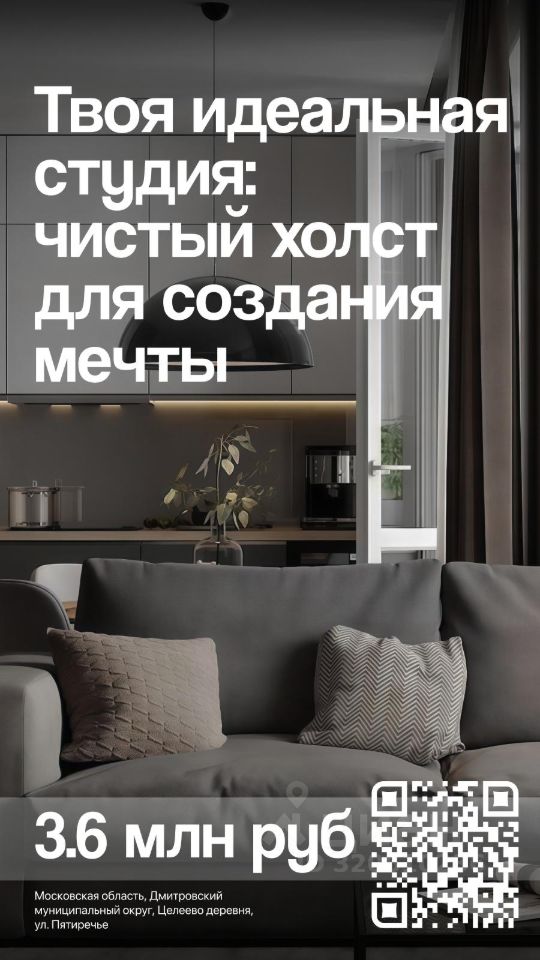 Адрес: Московская область, Дмитровский городской округ, деревня Целеево, улица Пятиречье, дом 3, 5-й этаж. Во дворе есть детские площадки, рядом сетевые магазины, аптеки, школа, детский сад, поликлиника, медицинский центр, дом культуры и почта. Также недалеко находится банкомат.