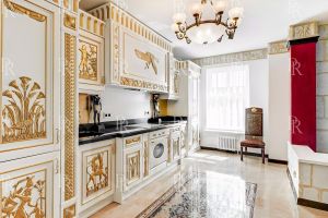 Общая площадь — 185 кв.м., расположена на 4 этаже 9-этажного дома, построенного по проекту архитектора Михаила Посохина в стиле русского классицизма.