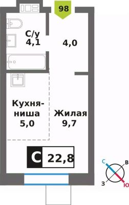Квартира-студия с компактной кухней-нишей во второй очереди Смарт квартала "Лесная Отрада" — умное решение для комфортной городской жизни в окружении природы.