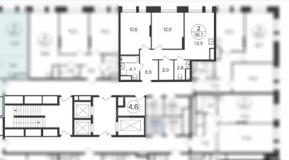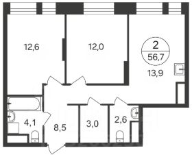 •Общая площадь квартиры — 56.7 м²