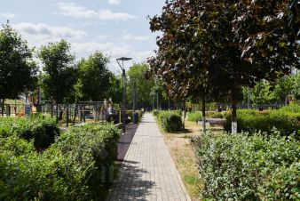 Озелененная территория комплекса со спортивными и детскими площадками, футбольным полем и местами для отдыха;