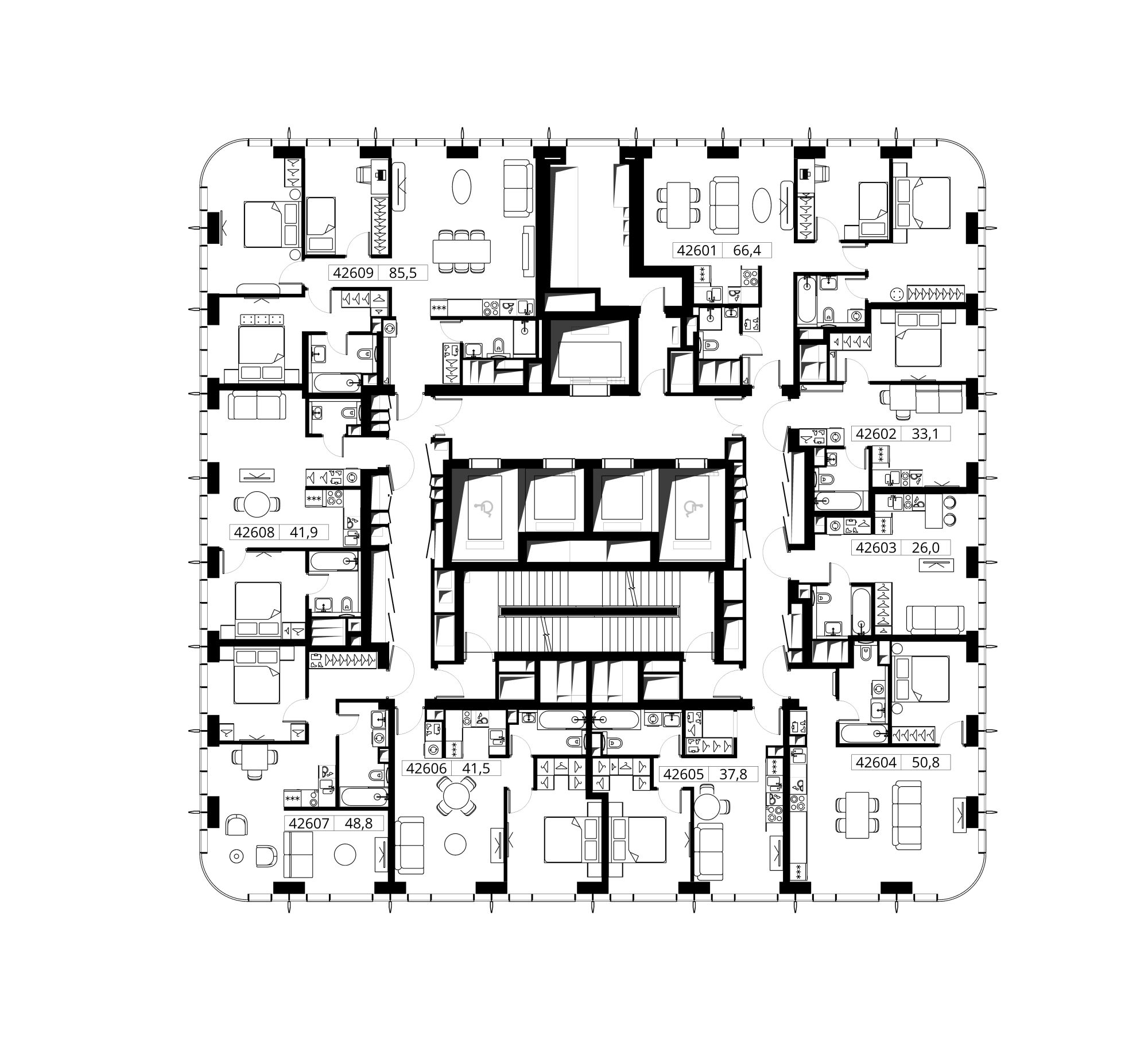 Продаётся 1-комнатная квартира общей площадью 50.80 м² без отделки в ЖК Сити Бэй, квартале Пасифик, на 28-м этаже 59 этажного дома.