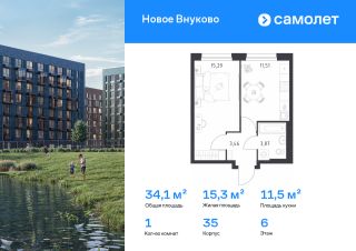 Строим кварталы для жизни с заботой о будущем. Предлагается 1-комнатная квартира комфорт-класса 34,13 кв.м в корпусе 35 на 6 этаже, в ЖК "Новое Внуково"