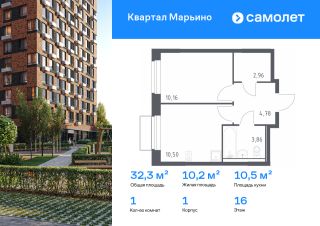 Предлагается 1-комнатная квартира комфорт-класса 32,26 кв.м в корпусе 1 на 16 этаже, в ЖК "Квартал Марьино"