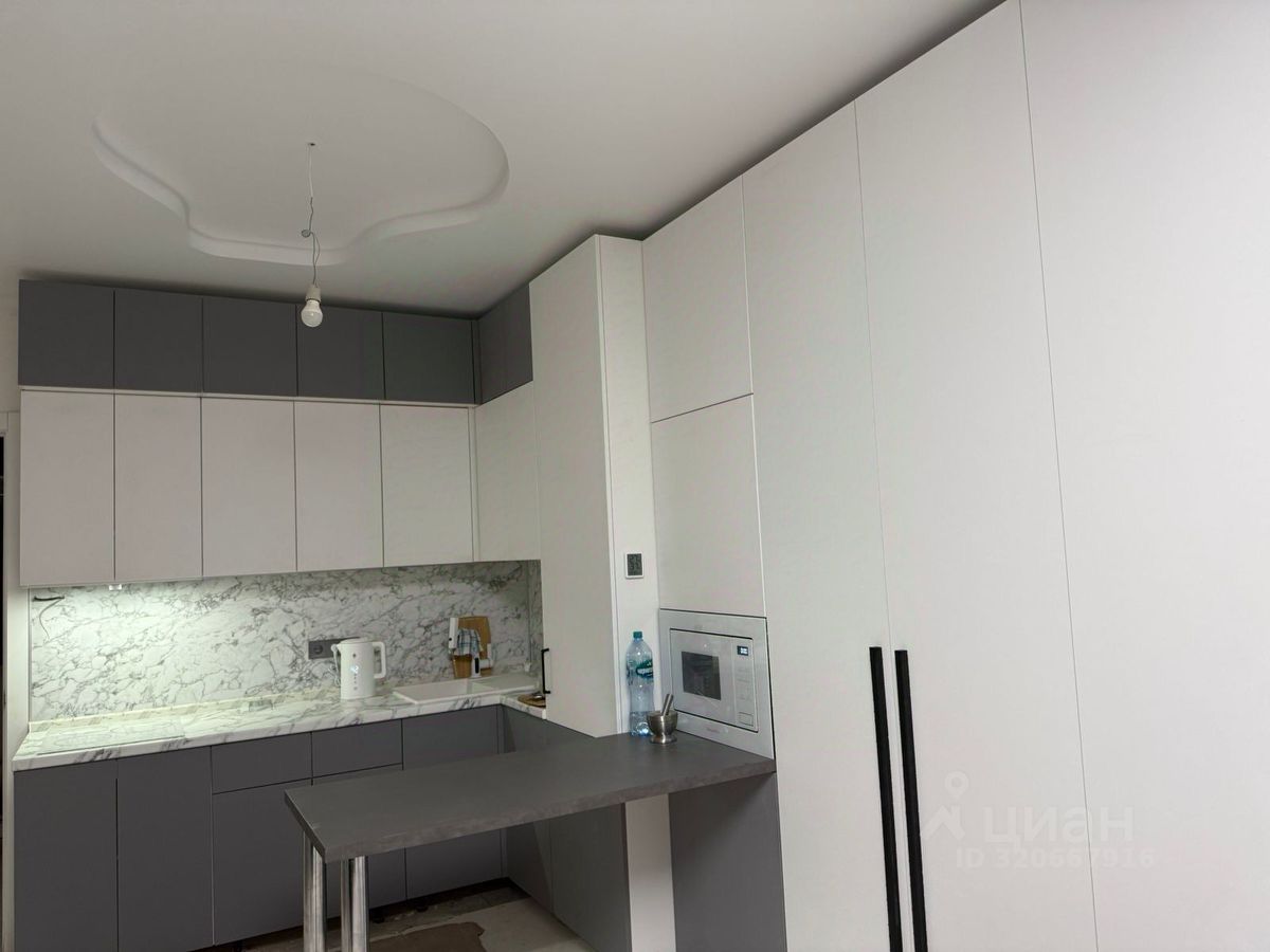 —В кухне есть всё необходимое для комфортной жизни: встроенная техника и уютное место для трапез. Она подойдёт как для одного человека, так и для молодой пары.