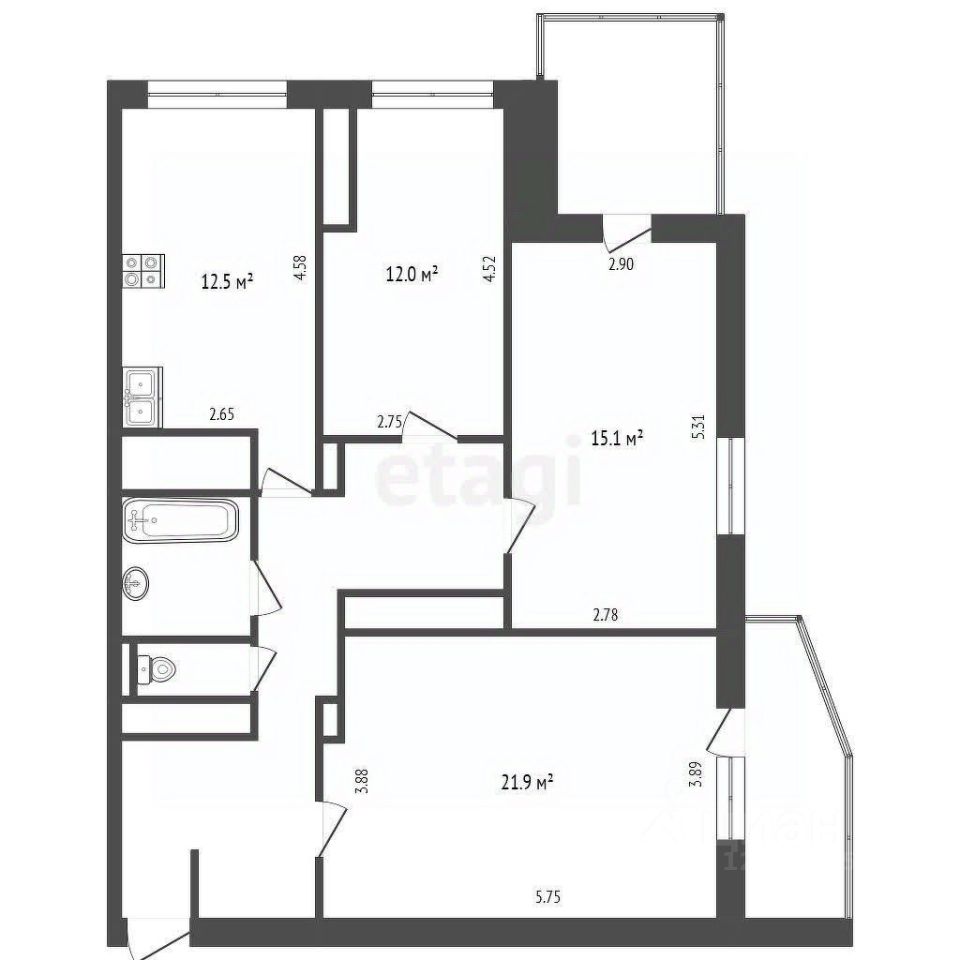 Два застекленных балкона (один утеплен) расширяют полезное пространство — их можно использовать как зону отдыха, кабинет или дополнительное место для хранения