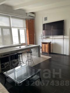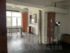 Компоновка внутри традиционная для творческих помещений (худ. студии, лофты...). Фактически это открытое пространство, разделенное на 2 смежные зоны. Сюда легко влезет толпа людей, но по-настоящему комфортно здесь одному или вдвоем.