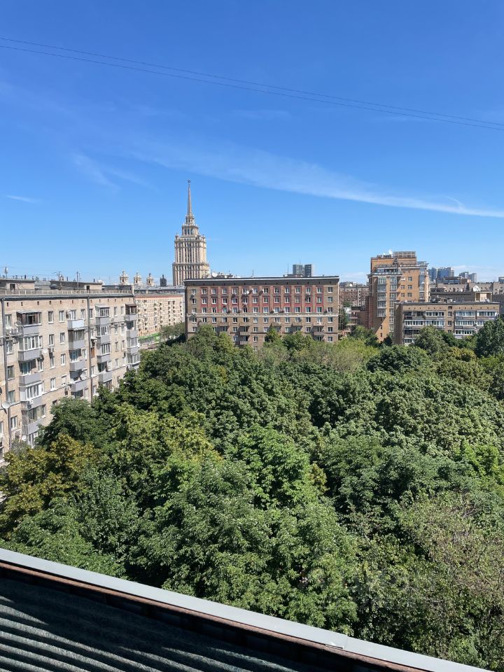 Здесь высокий потолок, большие окна, длинный балкон, панорамный вид(во двор), ванная с окном... А еще бесплатным приложением технический чердак(под хранение старых вещей). А еще есть выход на крышу. И нет соседей.