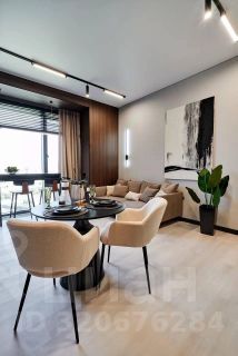 Квартира оборудована системой умный дом в сочетании с практичными решениями для индивидуального комфорта, полностью оснащена встроенной бытовой техникой, обустроена встроенной мебелью в коньячных оттенках со светлыми акцентами, что делает квартиру изысканной и уютной..