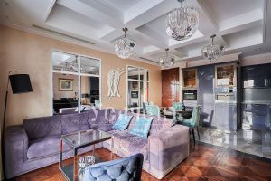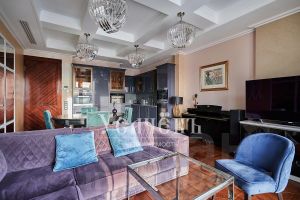 - апартамент полностью меблирован сделанной на заказ эксклюзивной мебелью, вся мягкая мебель итальянского производства, люстры и торшеры привезены из Голландии и Италии;