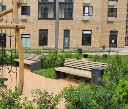 o Сухой фонтан с ночной подсветкой, зоны для прогулок, игр и занятий спортом.