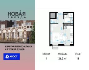Продаётся 1-к квартира 26.2 кв.м. на 18-м этаже 22 этажного дома, корпус 2 - Резиденция "Сочи" . Без отделки.