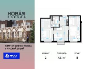 Продаётся 2-к квартира 42.1 кв.м. на 18-м этаже 22 этажного дома, корпус 2 - Резиденция "Сочи" . Без отделки.