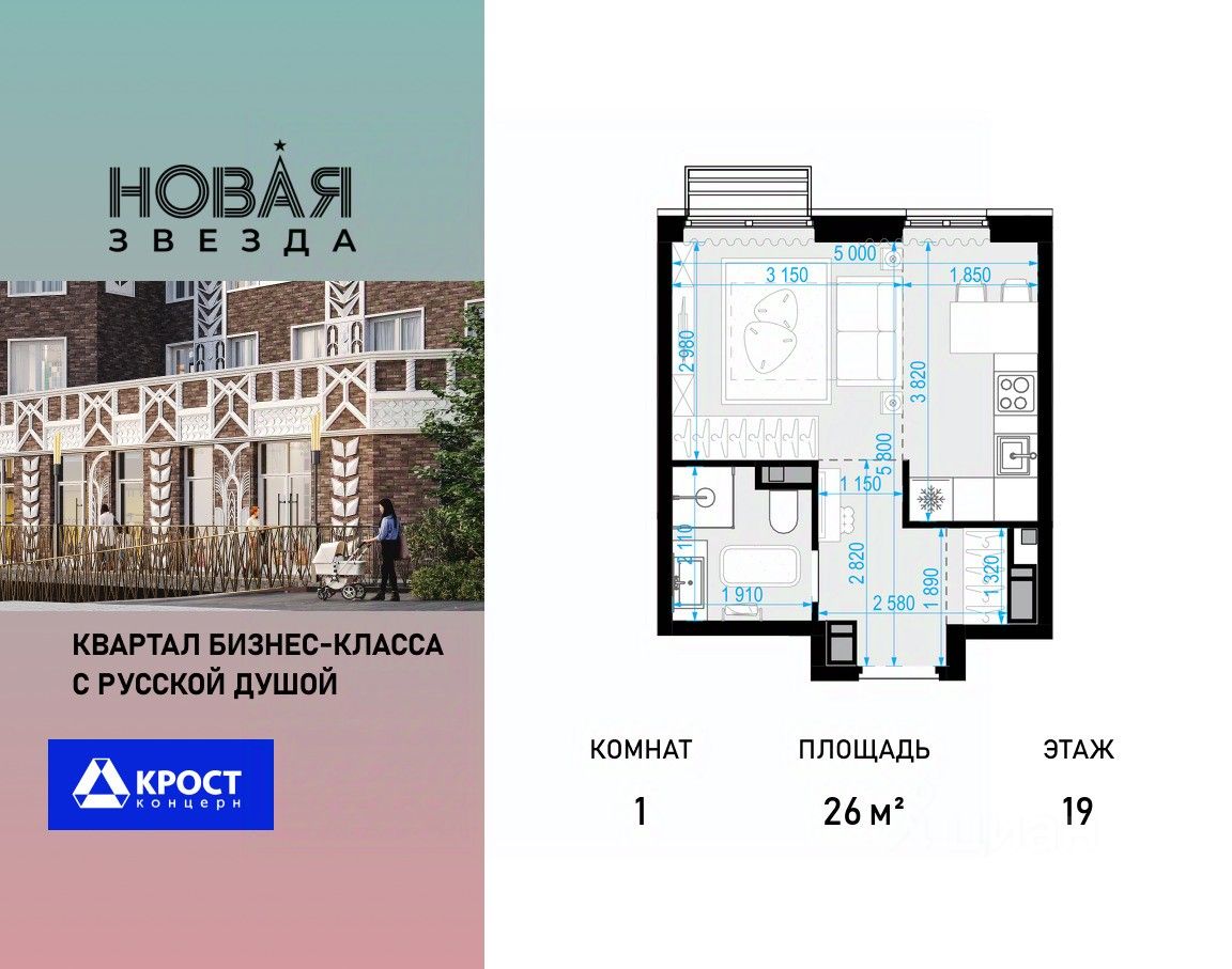 Продаётся 1-к квартира 26 кв.м. на 19-м этаже 22 этажного дома, корпус 2 - Резиденция "Сочи" . Без отделки.