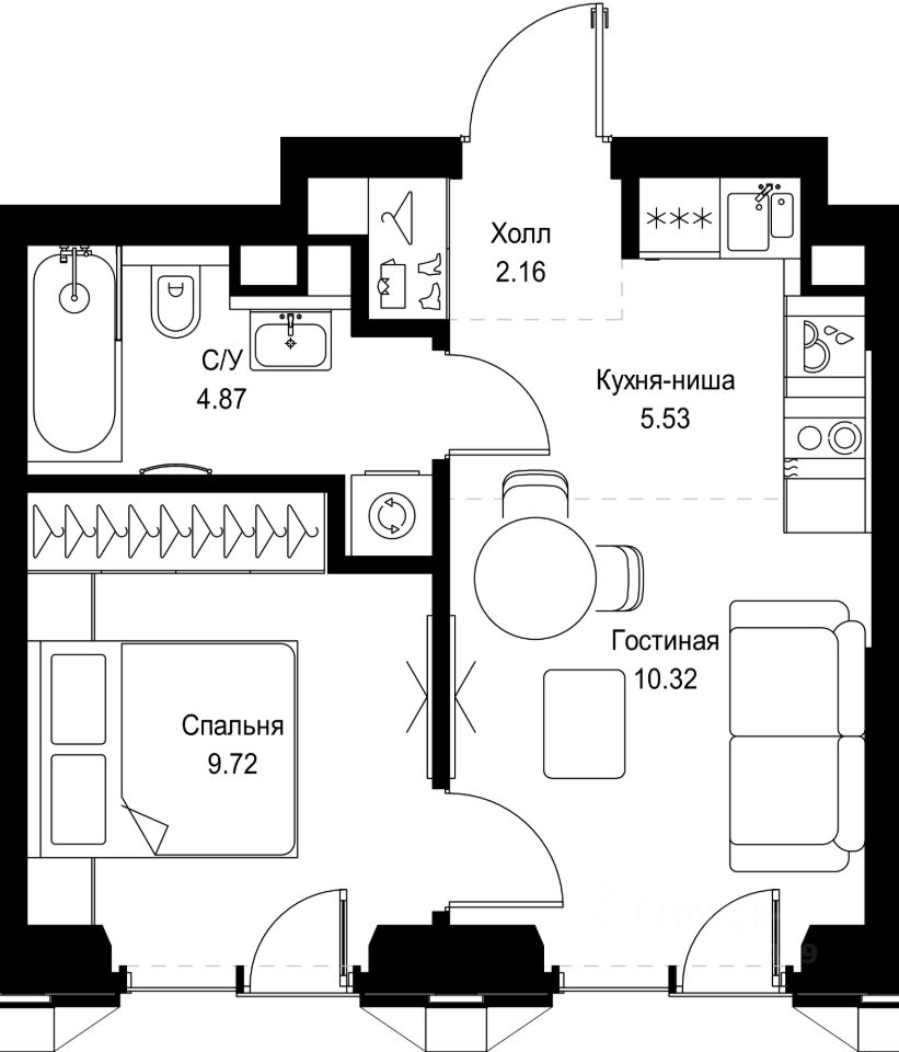 В ЖК SET продается 1-комнатная квартира площадью 32.60 м², расположенная в корпусе Б, на 13 этаже 59 этажного дома.