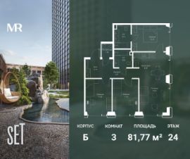 В ЖК SET продается 3-к квартира площадью 81.77 м², расположенная в корпусе Б, на 24 этаже 59 этажного дома.