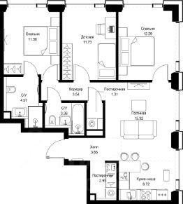 В ЖК SET продается 3-комнатная квартира площадью 77.43 м², расположенная в корпусе А, на 30 этаже 52 этажного дома.