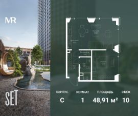 В ЖК SET продается 1-к квартира площадью 48.91 м², расположенная в корпусе С, на 10 этаже 28 этажного дома.